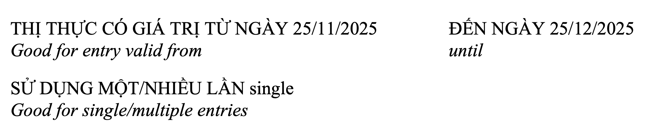 THỊ THỰC CÓ GIÁ TRỊ TỪ NGÀY 25/11/2025 (Good for entry valid from)