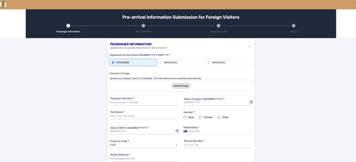 The Immigration Department strongly advises completing this pre-arrival form before your departure to Vietnam (up to 3 days in advance) to avoid delays.